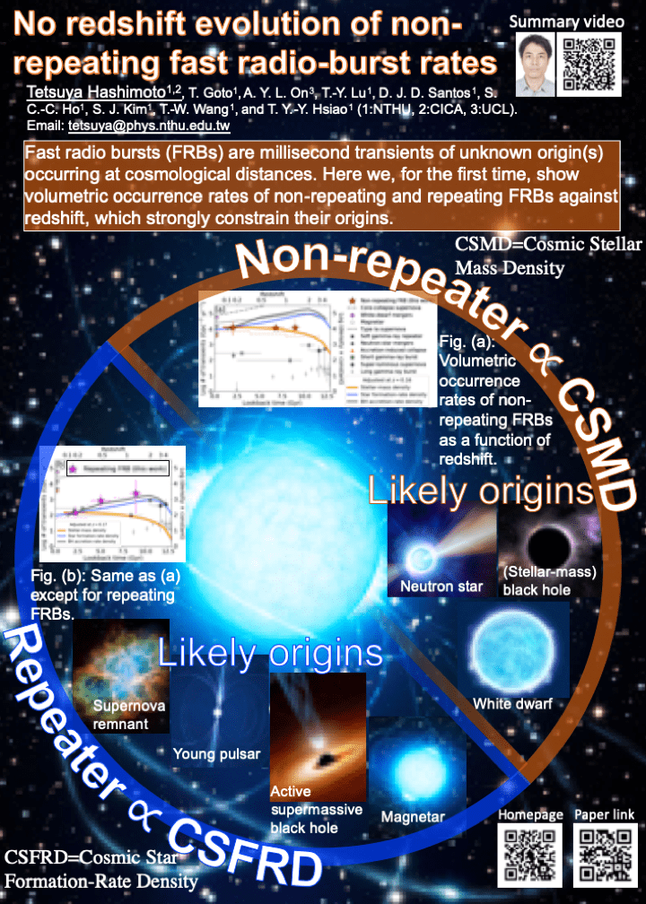 I presented a poster in ASROC 2020 in Taipei. ‘No redshift evolution of non-repeating fast radio-burst rates’, 3 Sep. (2020).